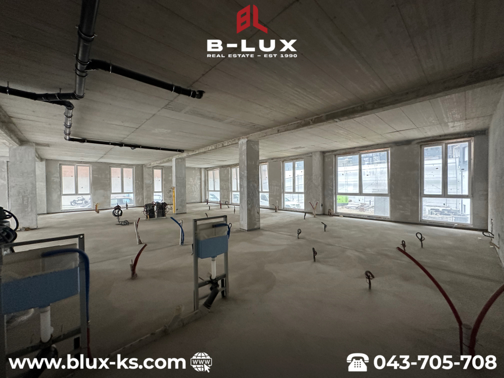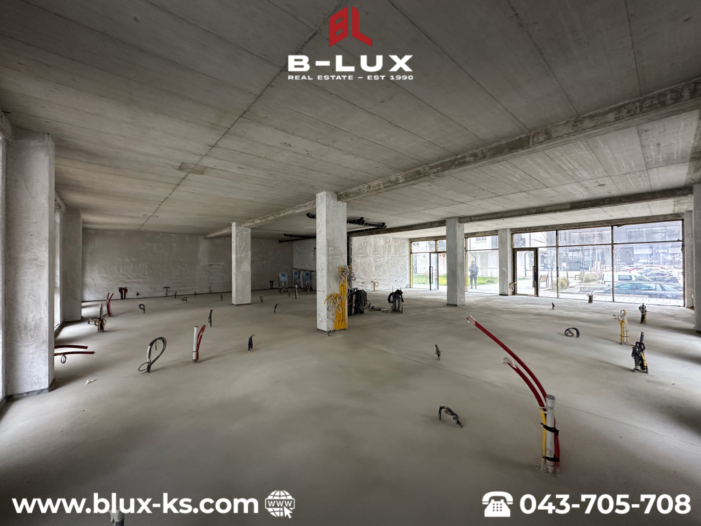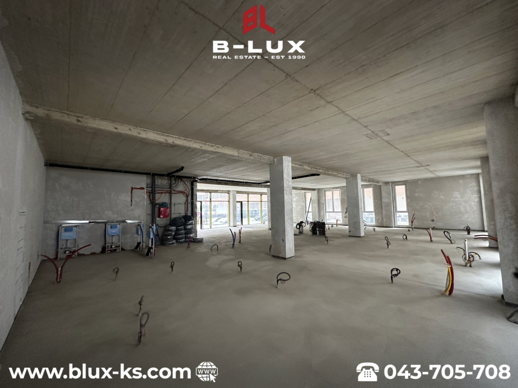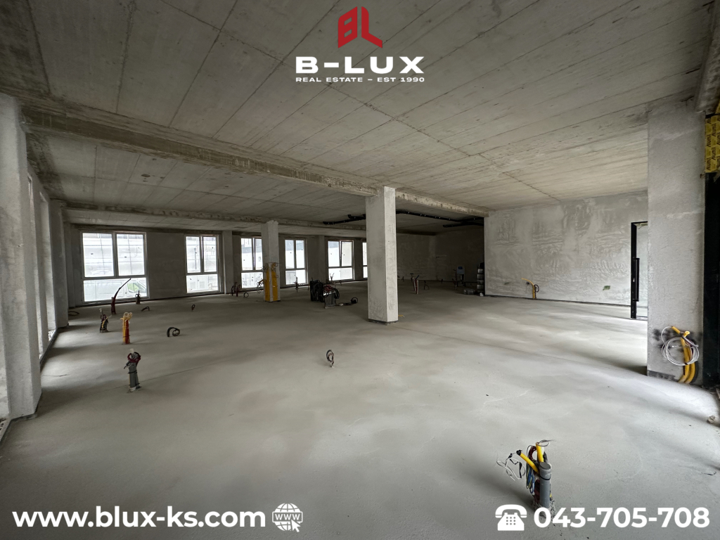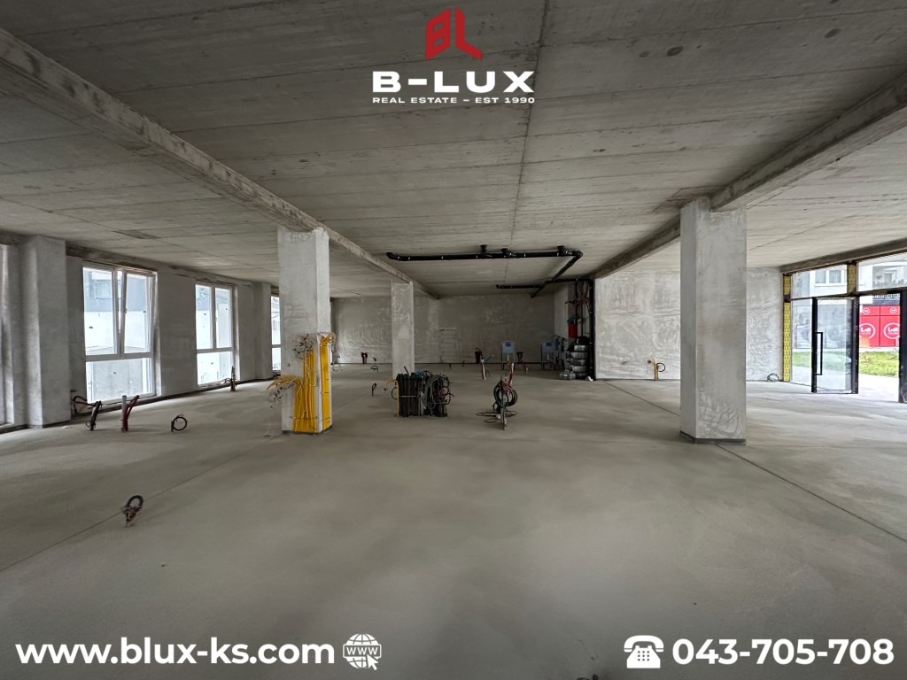 Lokali ndodhet në katin përdhesë, ka ndriçim në të gjitha anët, posedon listën poseduse dhe shitet komplet ose ndaras në sipërfaqe më të vogla prej 105m² dhe 164.6m².