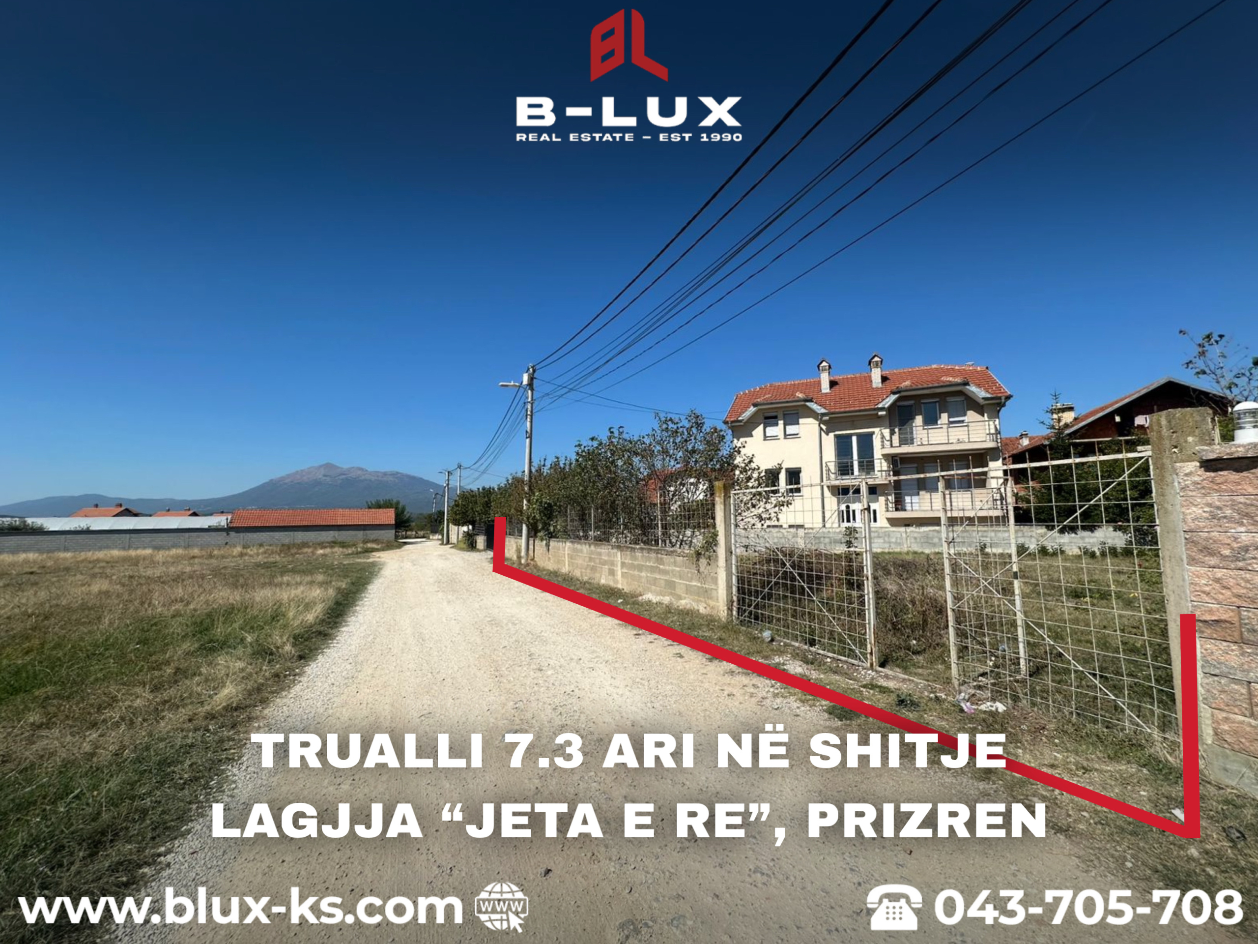Ofrohet për shitje trualli me sipërfaqe 7.3 ari (730m²), i cili ndodhet në Lagjen “Jeta e Re”, Prizren.
